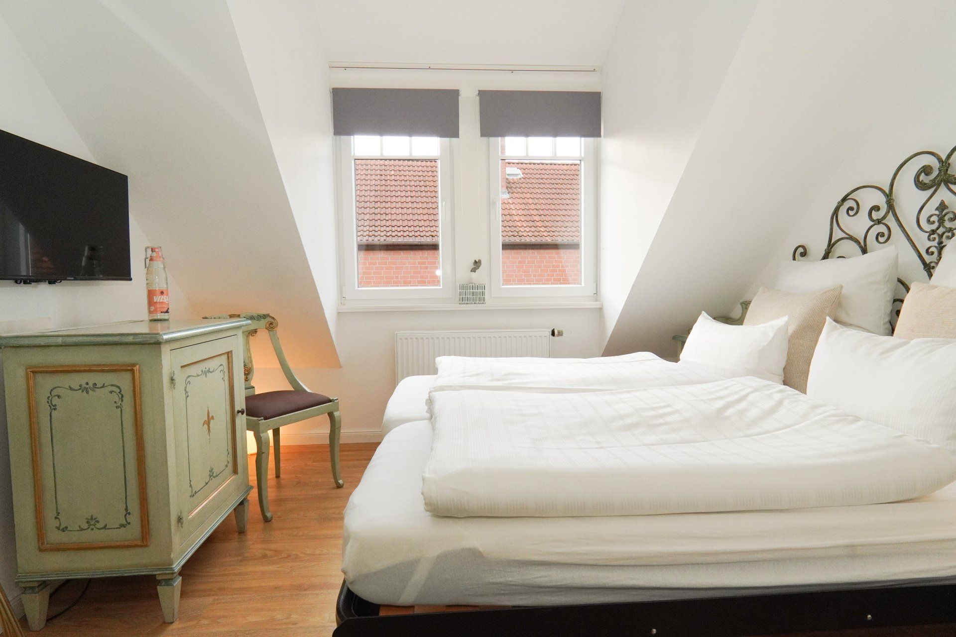 Wer an die Grüne Insel Irland denkt, dem kommen sicherlich als erste Bilder vieler verschiedener Grüntöne in den Sinn. Einen weiteren Blickfang biete auch das aus Eisen gearbeitete Bett, welches Erinnerungen an das Brückengeländer der Ha’penny Bridge dieser Stadt aufkommen lässt.